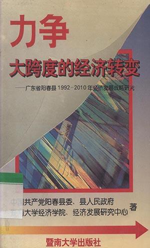 - 《力争大跨度的经济转变》广东省委提出我省东西两翼力争十年赶上珠江三角洲经济发达地区现在的水平。阳春作为粤西地区的一部分,如何在挑战与机遇并存、压力和动力同在的大气候中,抓住有利时机...